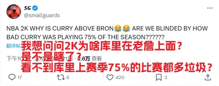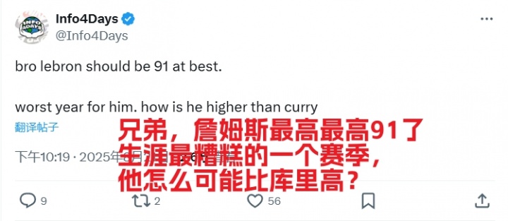詹姆斯2K26评分94引发争议,球迷普遍认为96更合理,并对库里评分更高提出质疑